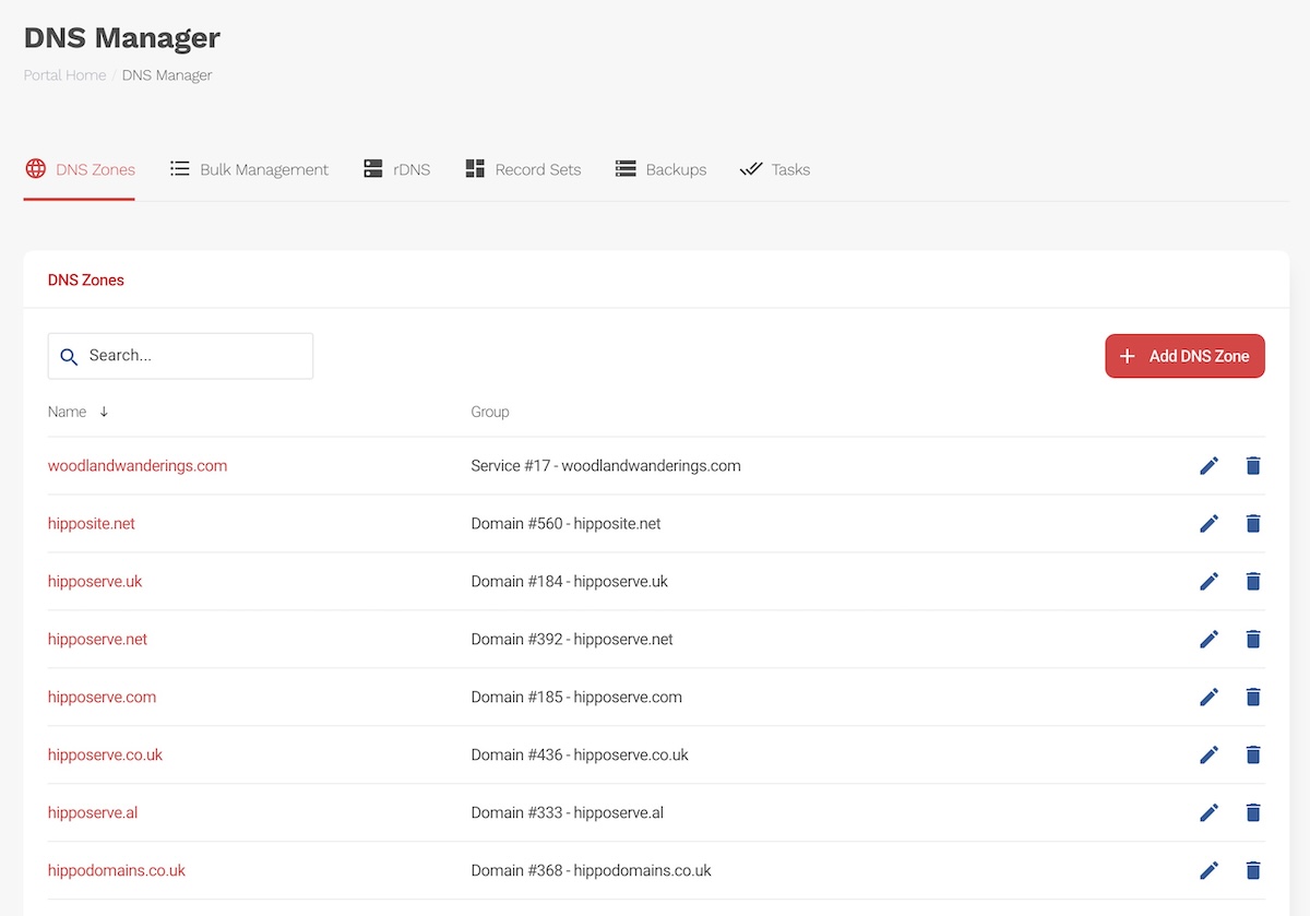 Features of the Hipposerve DNS Manager
