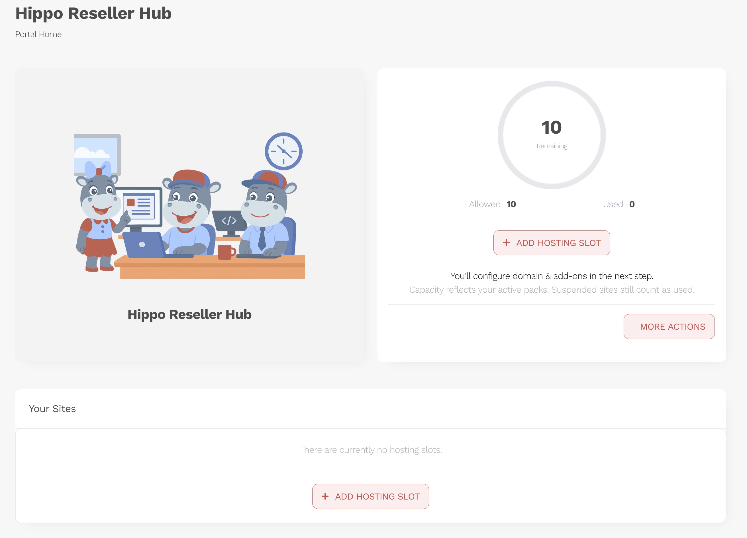 As soon as you purchase your first Reseller Pack, your account will be upgraded to a reseller account. This not only gives you access to the Reseller Hub, but also unlocks additional discounts on all domain purchases and a range of other Hipposerve products.