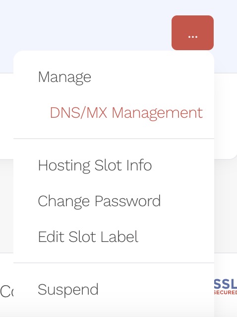 - Select DNS/MX Management from the menu.