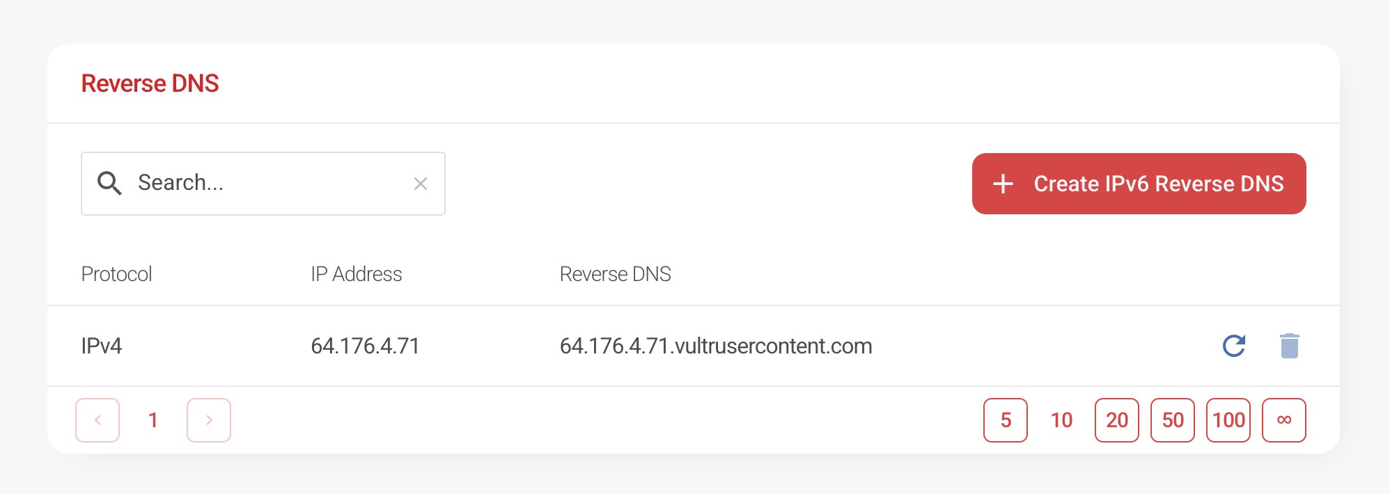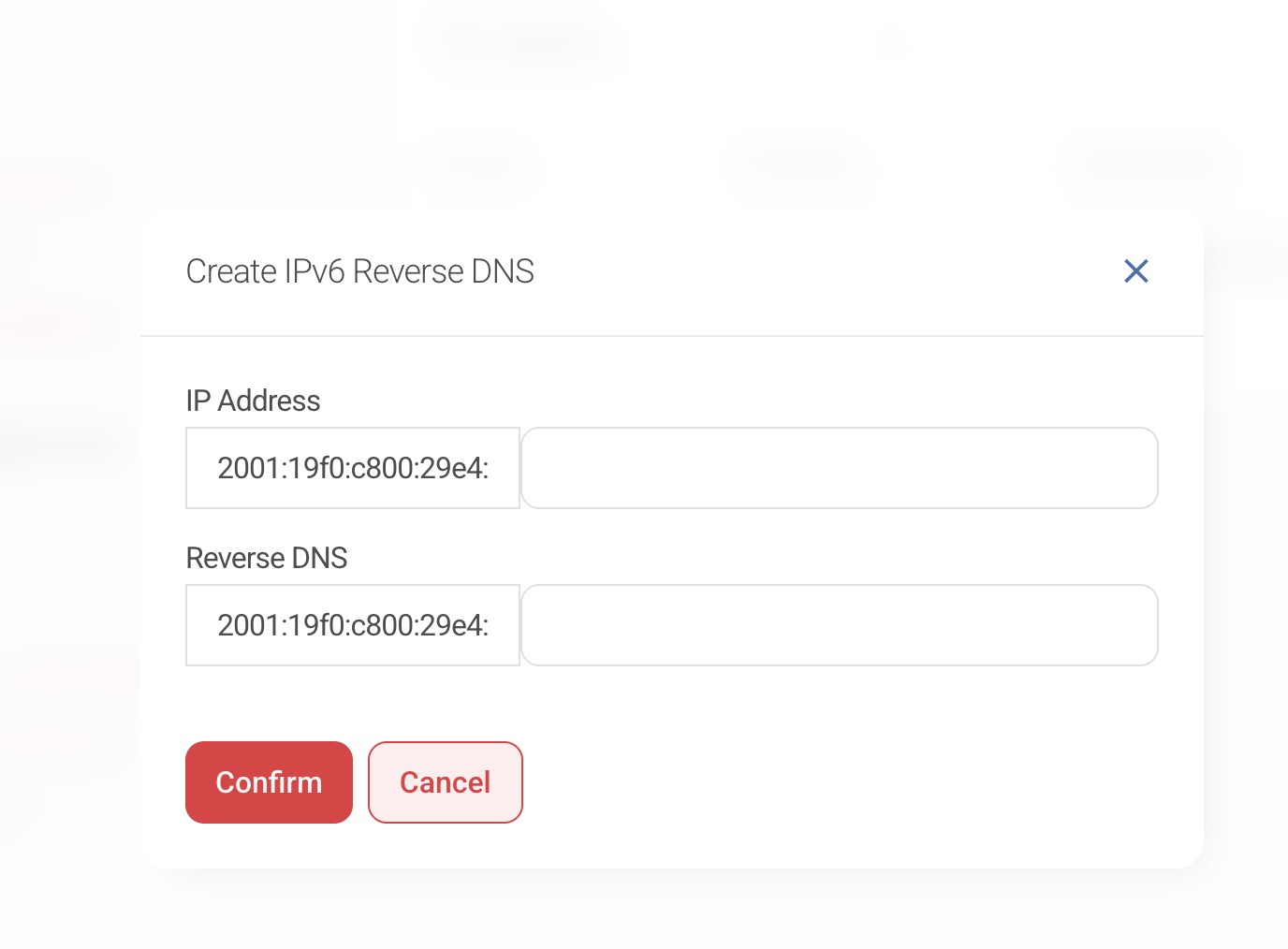 Nëse VPS juaj përfshin mbështetje për IPv6, ju gjithashtu mund të konfiguroni reverse DNS për adresën tuaj IPv6.